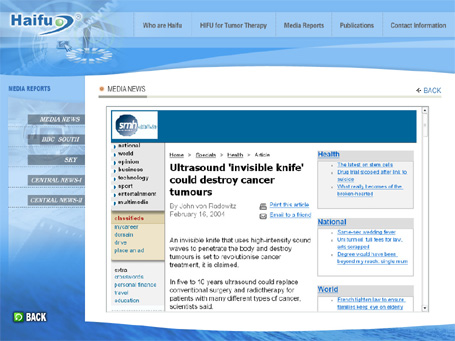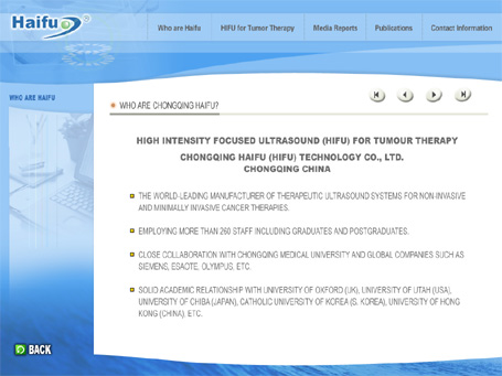重慶海扶醫(yī)療科技股份有限公司(以下簡稱:海扶醫(yī)療)成立于1999年,是致力于聚焦超聲外科領(lǐng)域的基礎(chǔ)研究、設(shè)備開發(fā)、生產(chǎn)制造、臨床方案、培訓(xùn)支持、市場營銷、售后服務(wù)于一體的醫(yī)療設(shè)備和綜合解決方案的提供商,是國家級(jí)高新技術(shù)企業(yè)。海扶醫(yī)療堅(jiān)持以企業(yè)為技術(shù)創(chuàng)新主體,堅(jiān)持走中國特色大型治療設(shè)備的原創(chuàng)之路,自主開發(fā)重慶多媒體的出聚焦超聲外科治療良、惡性腫瘤、婦科常見病、康復(fù)保健三大系列、十多種型號(hào)高端醫(yī)療設(shè)備,技術(shù)成果居世界領(lǐng)先水平。海扶醫(yī)療的超聲治療設(shè)備已取得了中國CFDA注冊(cè)認(rèn)證、歐盟CE注冊(cè)認(rèn)證等33個(gè)國家和地區(qū)的市場準(zhǔn)入證,已出口英國、意大利、西班牙、俄羅斯、沙特阿拉伯、德國、古巴、南非等國,在“一帶一路”北中南三條主線的20多個(gè)國家的醫(yī)療機(jī)構(gòu),建立了50余家聚焦超聲外科治療中心。目前,國內(nèi)外已有2300多家醫(yī)療機(jī)構(gòu)在臨床廣泛應(yīng)用海扶?聚焦超聲外科系列設(shè)備,累計(jì)在全球治療各種良、惡性腫瘤患者8萬余例(其中惡性腫瘤病人存活期最長時(shí)間已達(dá)20年),小型化婦科設(shè)備已經(jīng)治療婦科患者超過200余萬例,其臨床安全性和有效性通過了十多個(gè)國家臨床驗(yàn)證,相關(guān)臨床成果在Nature系列雜志上公開評(píng)述,重慶動(dòng)畫公司BBC亦多次做出專題報(bào)道。海扶醫(yī)療在聚焦超聲外科技術(shù)原創(chuàng)領(lǐng)域具備完全自主知識(shí)產(chǎn)權(quán)和國際競爭的優(yōu)勢(shì)。